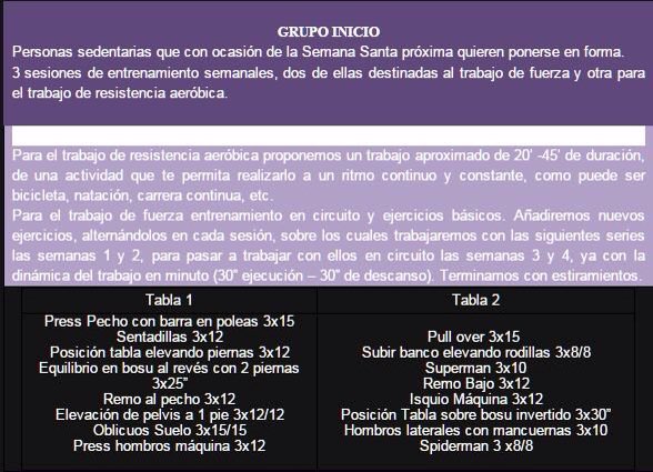 Podemos utilizar el "entrenamiento de Cuaresma" para prepararnos bien para esta salida extraordinaria. Recuerda hay tres grupos de entrenamiento, elije el que mejor se adapte a tu condición física (Inicio,Frecuencia,En forma)22
